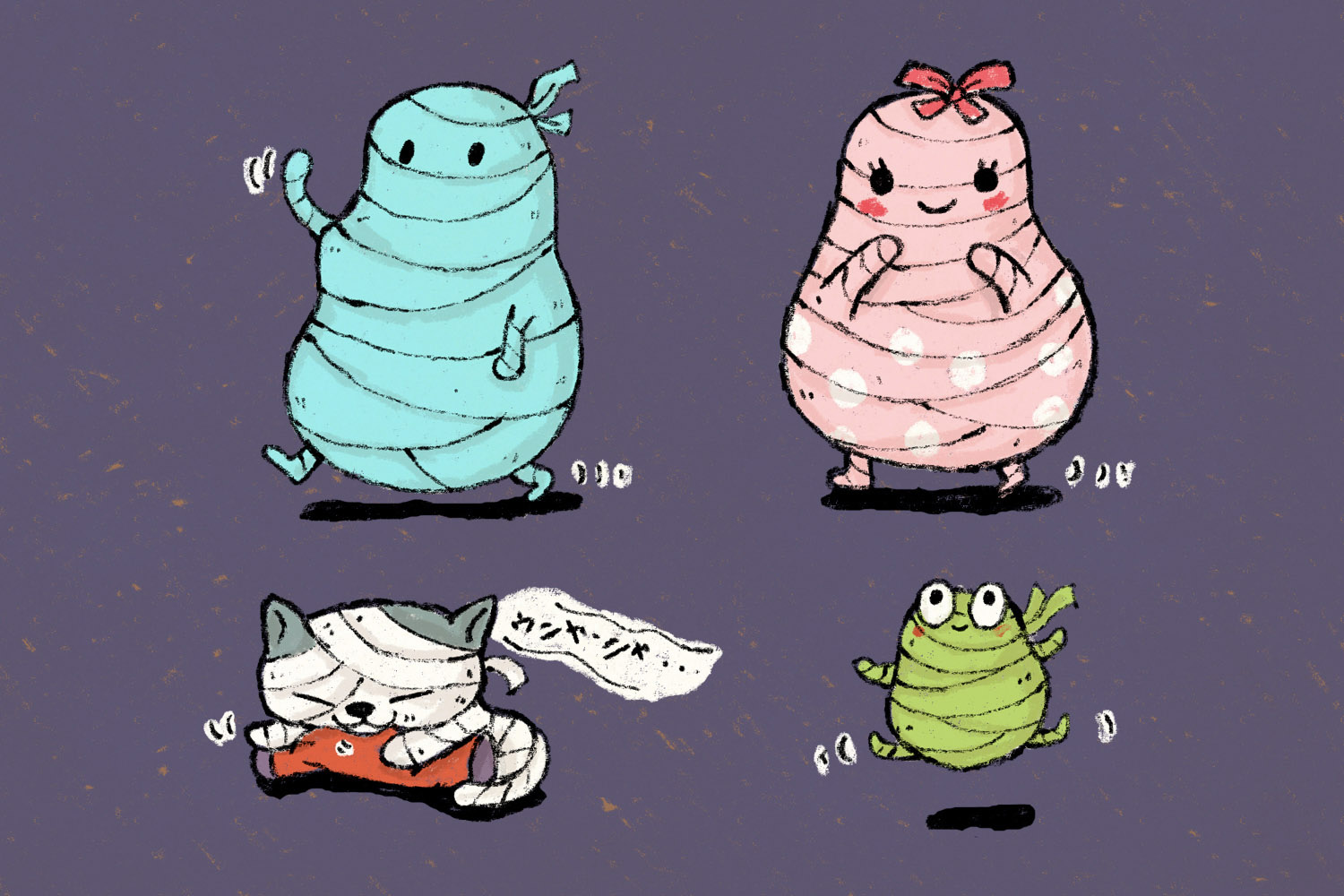 ブックデザインのために考えたキャラクター。兄弟やペットのキャラもいます。